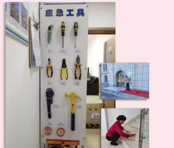物業(yè)人必須練就眼里有活兒和把活兒干的“漂亮”的本領(lǐng)。辦公樓的石材臺(tái)階會(huì)被保潔阿姨手中沾著特別調(diào)制藥劑的小刷子,刷的更加明亮光彩。樓門口暗淡無(wú)光的地毯會(huì)被保安大叔手中的壓力水槍,洗得更加鮮紅欲滴。不論是種樹(shù)拔草還是防洪除雪,不論是門、窗、玻璃,還是臺(tái)、壁、地板,都要有物業(yè)人不畏酷暑嚴(yán)寒,不畏雨雪寒霜的全情付出。